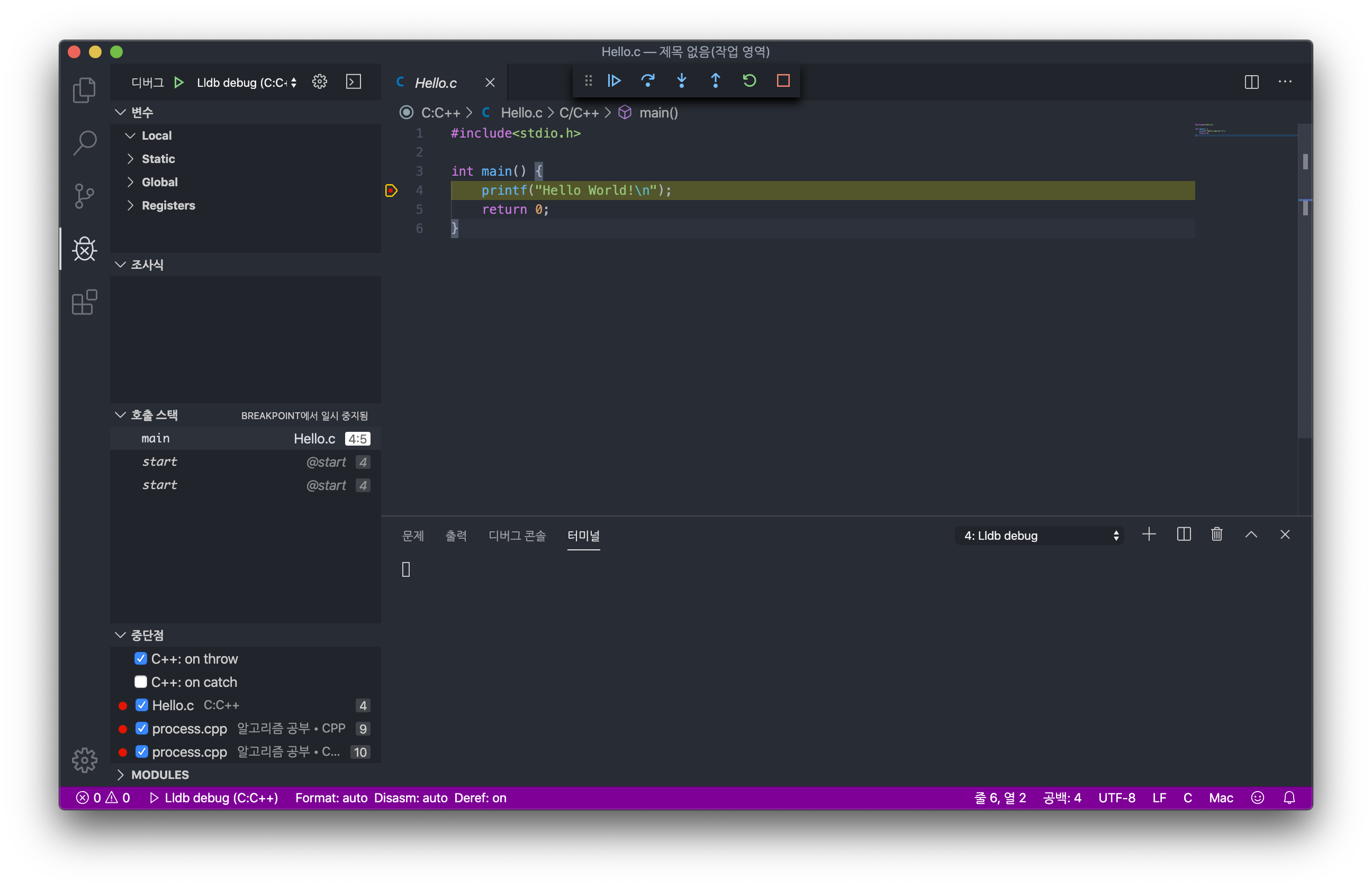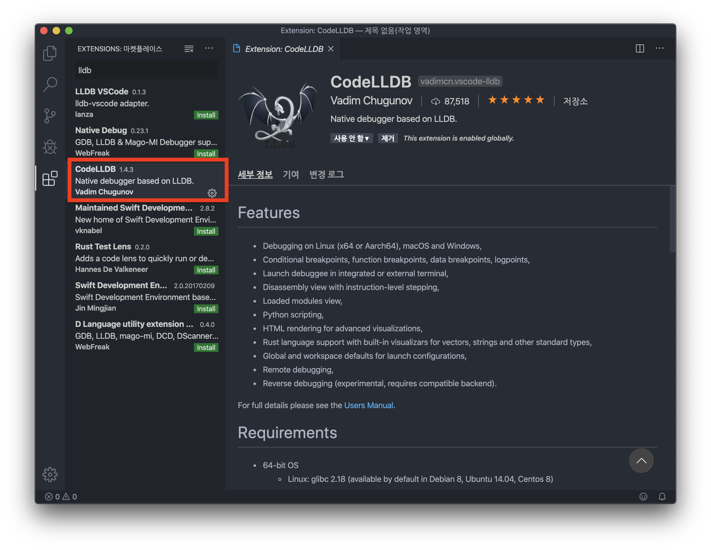 무슨이유인지는 잘 모르겠지만, 저는 기본 lldb가 작동이 안되 따로 Extension을 이용해 lldb를 이용해줄겁니다.