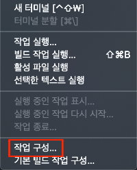 VSCode화면 상단에 "터미널 > 작업구성"을 들어갑니다.