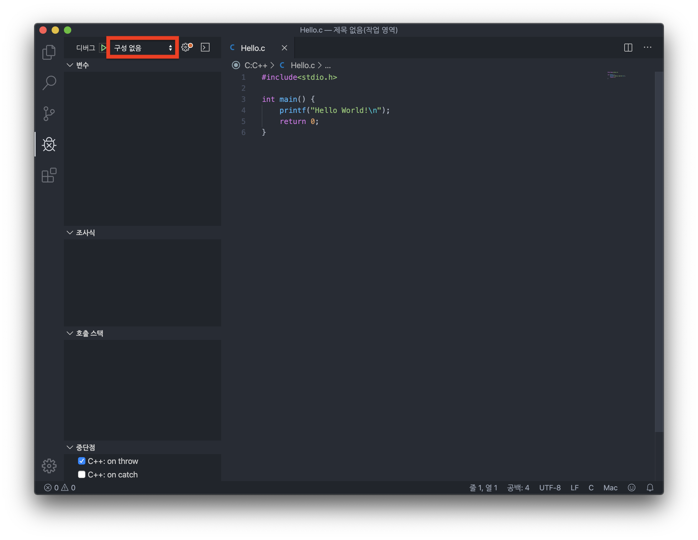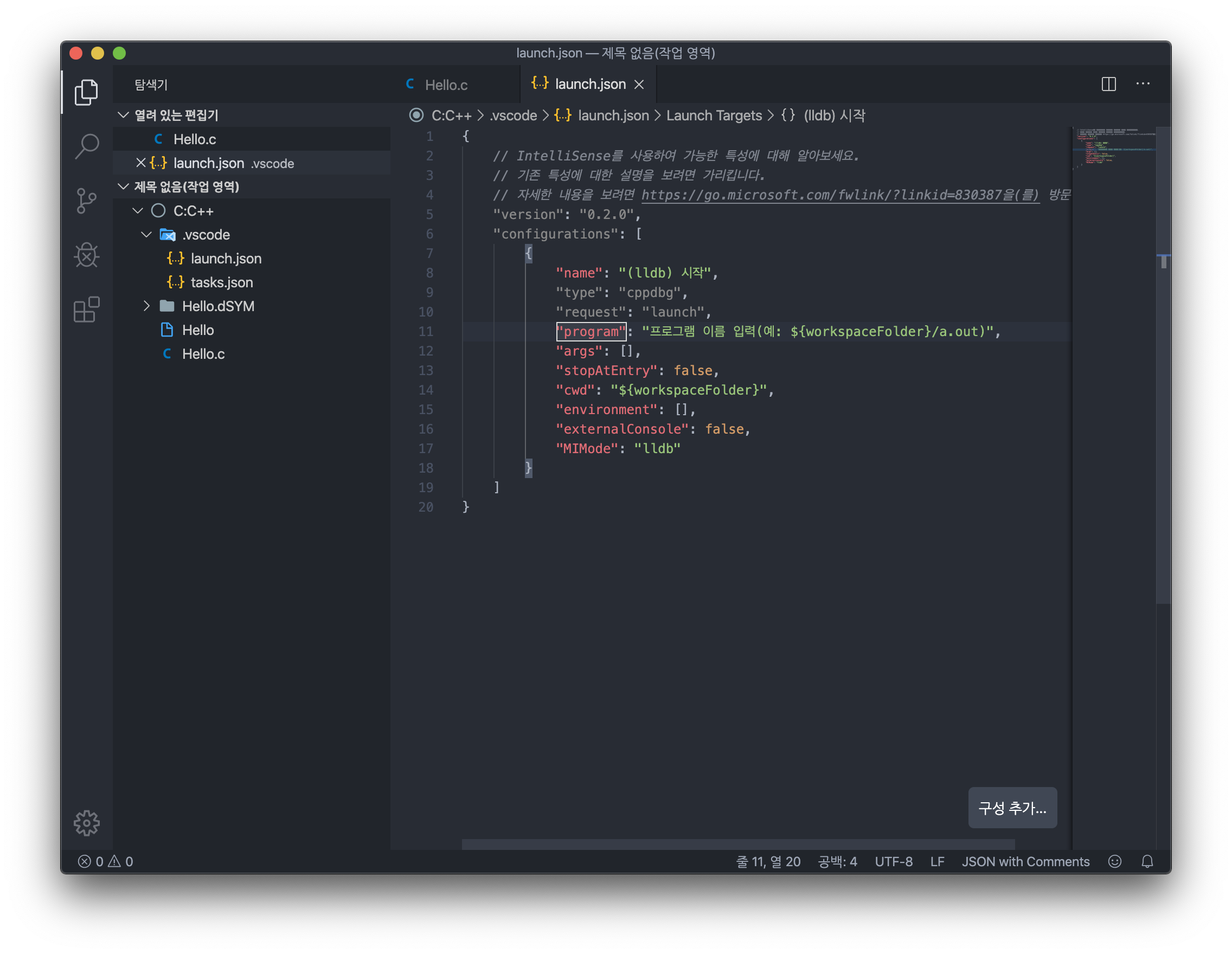 이상, 여기까지 Mac에서 VSCode C/C++셋팅이였습니다.