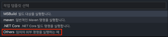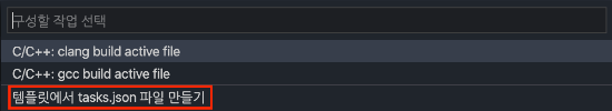 그리고 해당폴더에 tasks.json파일을 만들어야 하기 때문에 "탬플릿에서 tasks.json 파일 만들기"로 들어갑니다.