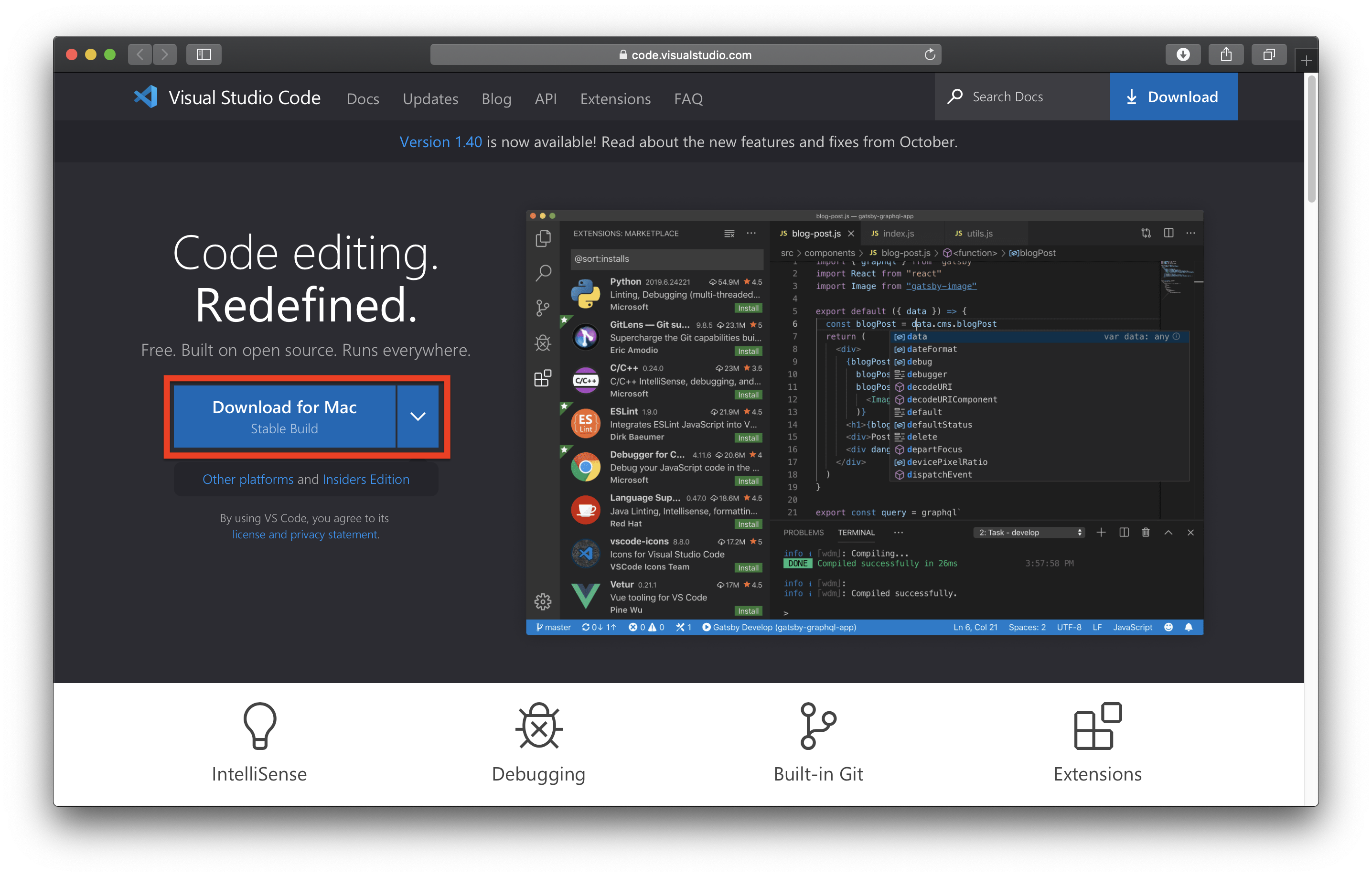 Visual Studio Code is a code editor redefined and optimized for building and debugging modern web and cloud applications. Visual Studio Code is free and available on your favorite platform - Linux, macOS, and Windows.