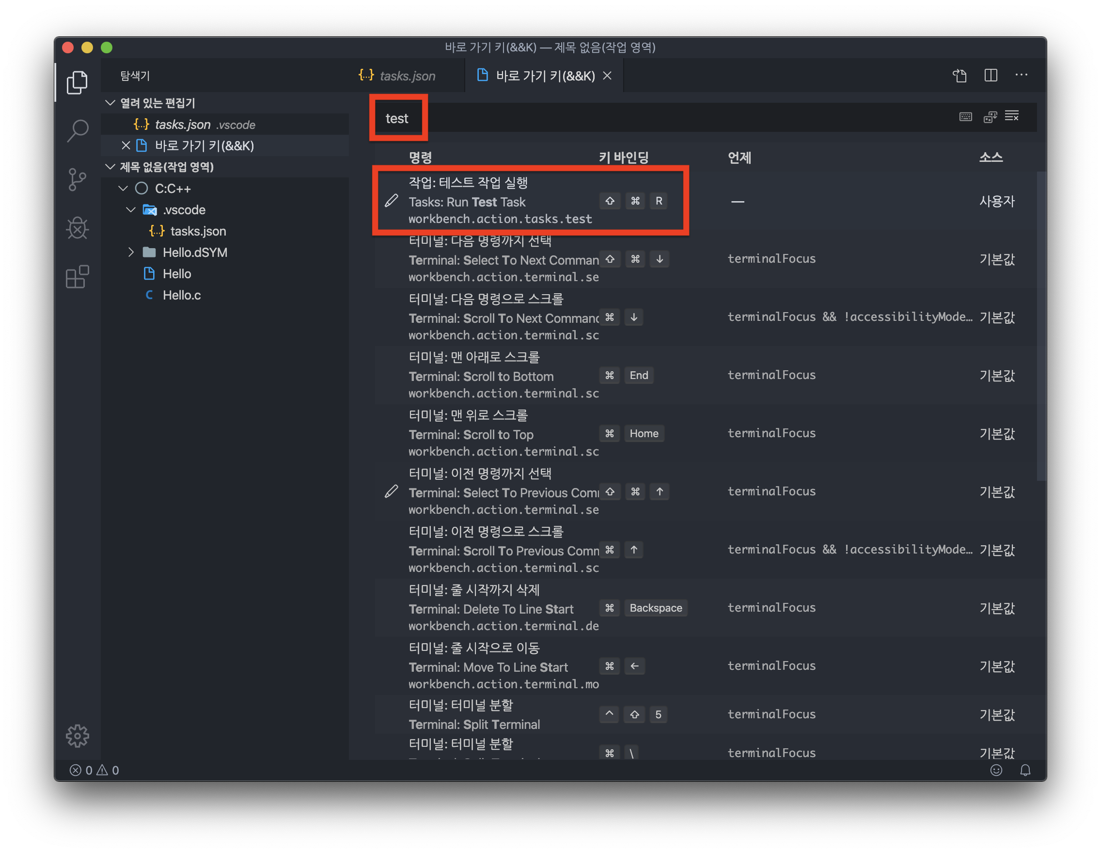 작업: 테스트 실행 부분을 키 바인딩해줍니다.